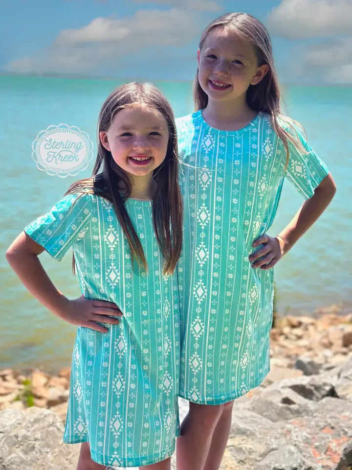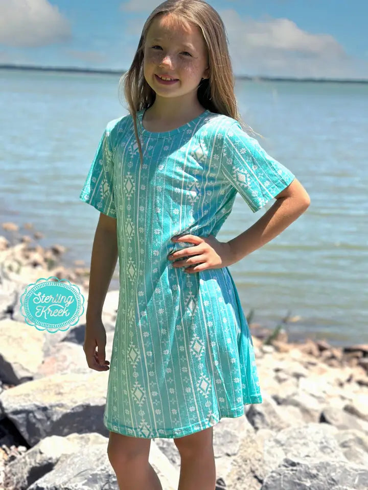 Make a statement in this one-of-a-kind turquoise dress! It has a white aztec print, perfect for strutting on the street or twirling on the dance floor. An eye-catching combo that's sure to turn heads! Rock this mini and walk it out!