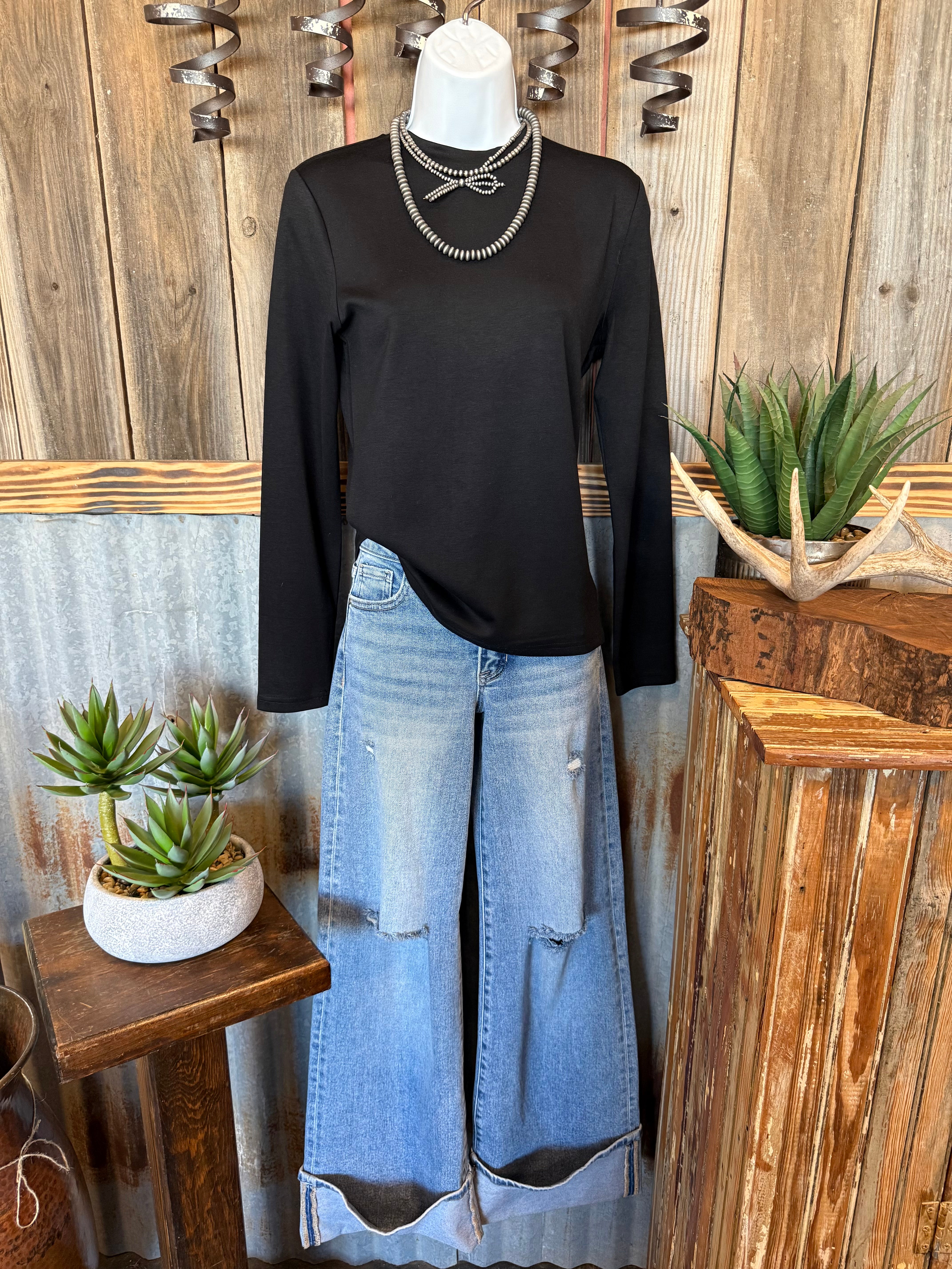 The Cloud Basic L/S Midnight, a brand known for its original, hand-drawn designs and a flair for the unique. This knit top, an ideal addition to any woman's wardrobe, offers a blend of Western and weird, making it anything but basic.