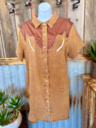 You know that super comfy super soft material we use for the RODEO GROUNDS top -- well we used it for a dress, PLUS mixed it a different type of material.